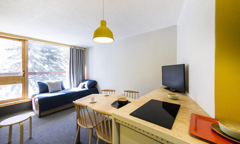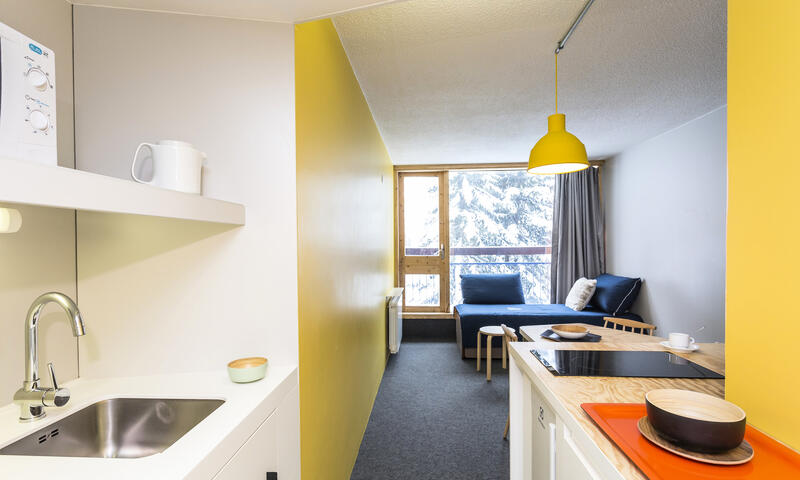 Studio de 25m², meublé pour 4 personnes, situé au coeur de la station, au 1er étage de la résidence Miravidi au village du Charvet, avec balcon exposé Sud-Ouest