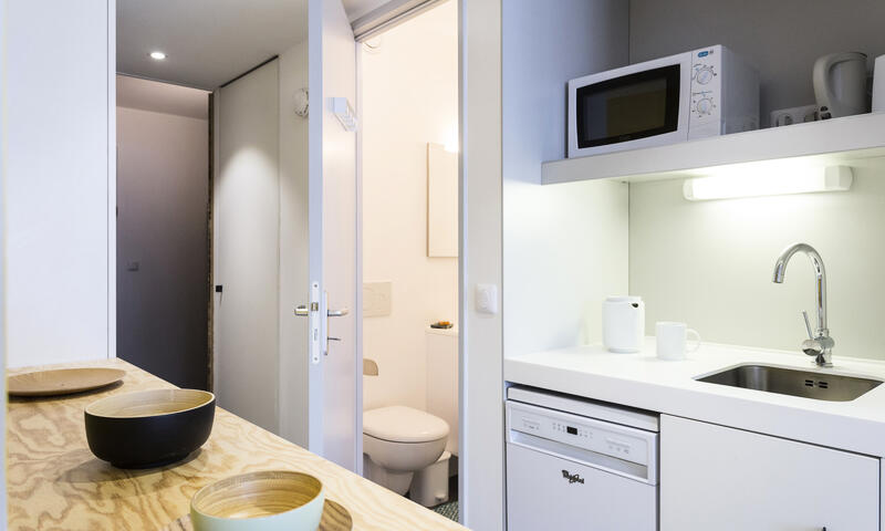 Le Coin cuisine comprend : 4 plaques vitrocéramique, mini four, micro-ondes, lave vaisselle, réfrigérateur, grille-pain, cafetière électrique à filtre, et cafetière Nespresso