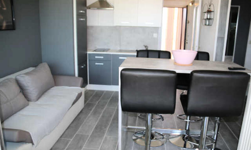 Joli appartement climatisé pour 4 personnes, situé à Héliopolis entrée FGH, au 3ème étage sans ascenseur. Séjour avec coin cuisine avec micro-ondes, cafetière, Senséo, bouilloire, aspirateur, lave linge.. Coin chambre avec un lit dans en 160 cm. Un canapé dans le séjour. Salle d'eau  WC séparés. 2 Balcons communicants.(10 m² ). Parking n° 30.