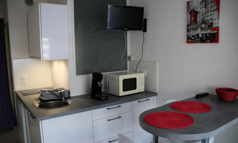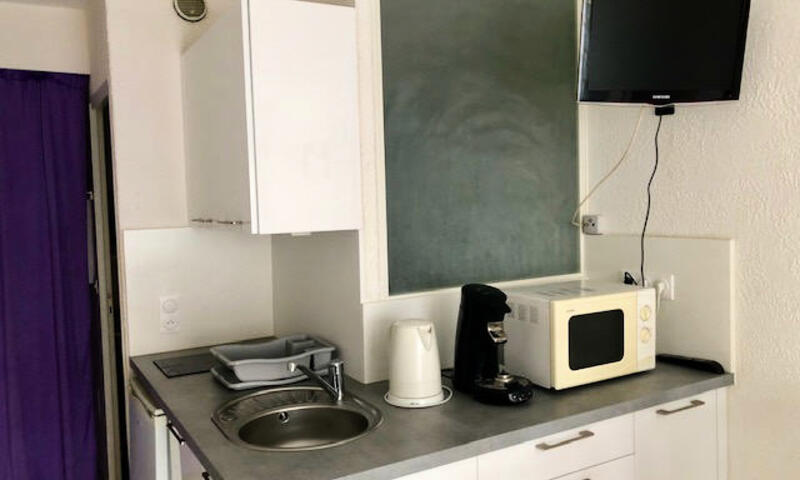 Studio climatisé pour 2 personnes situé à Port Nature Colline 1, au 1er étage sans ascenseur, côté parking, exposition nord. Séjour avec 1 lit en 140cm. Coin cuisine avec micro ondes, Senseo, bouilloire, grille pain, fer à repasse, sèche cheveux.Salle d'eau avec WC. Terrasse. Parking n° 428.