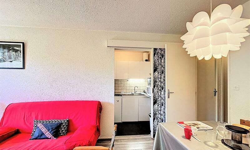 Studio de 28m², pour 4/5 personnes, situé Résidence Orion, au 4ème étage, au pied du Télésiège La Voie Lactée, balcon exposé sud, vue pistes.