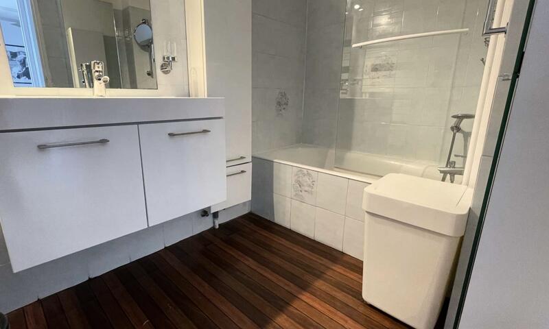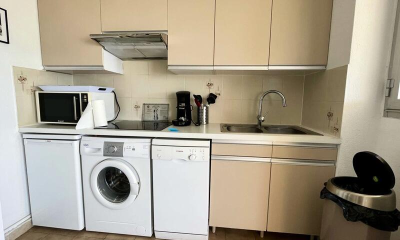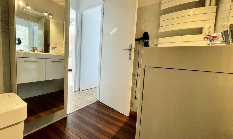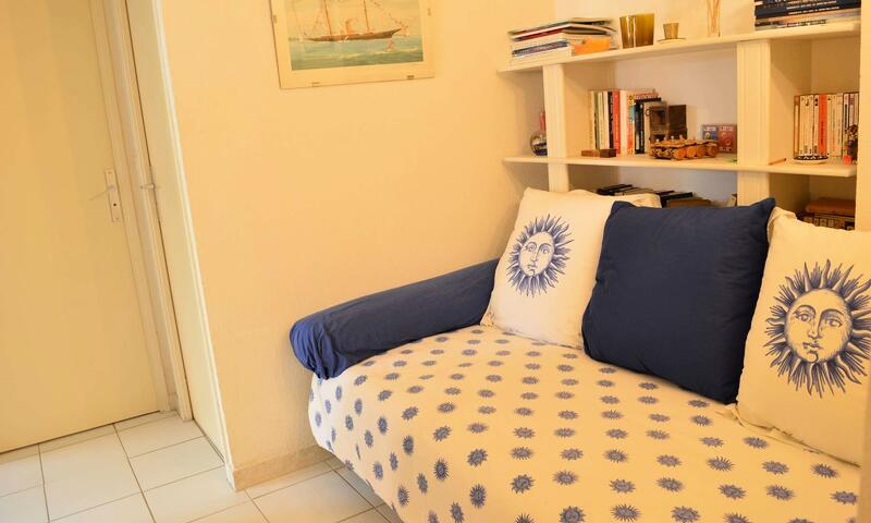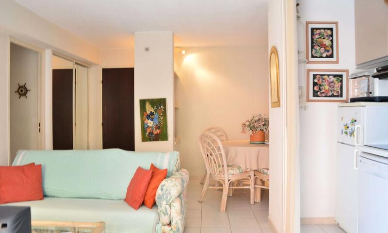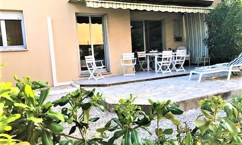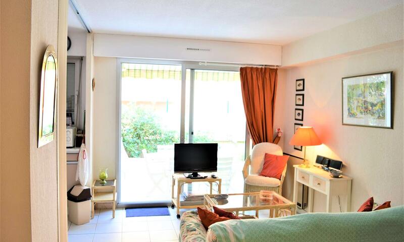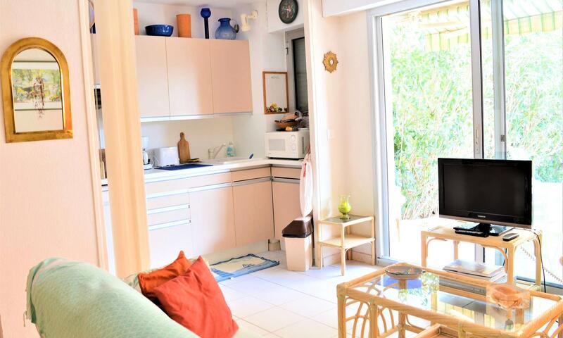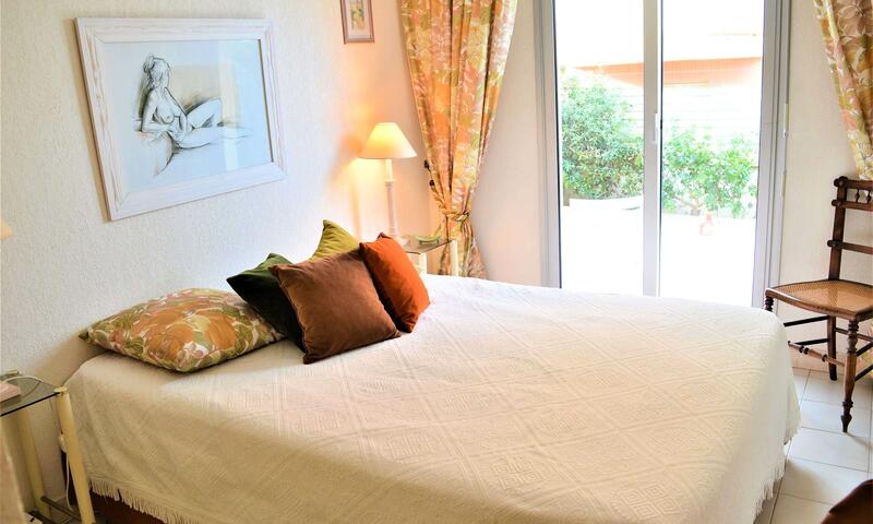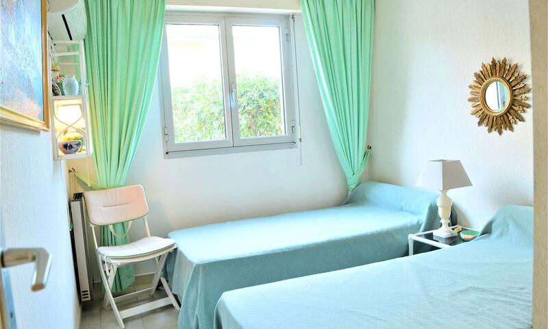 Cet appartement climatisé de vacances se compose au rez-de-jardin, d'un salon et d'une cuisine toute équipée donnant sur une large terrasse à proximité de la Promenade de la Mer, d'une chambre avec un lit en 140 cm, d'une chambre avec deux lits une personne, d'une banquette lit pour une personne,d'une salle de bain avec machine à laver et d'un WC séparé.