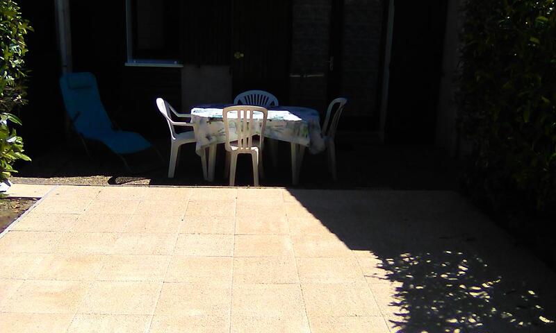 Séjour sur terrasse. Coin cuisine: plaque à induction 2 feux, four, micro-ondes, réfrigérateur-congélateur, lave-vaisselle et lave-linge. Salle de douche (0.88x2.19): lavabo et douche. WC séparés. Chambre 1 (3.38x2.32): 1 lit en 140. Etage: Mezzanine (ouverte au dessus séjour (2.74x1.25 + 1.48x0.91): 1 lit en 90, sol moquette. Chambre 2 (3.36x2.31): 1 lit en 140, sol moquette. Salon de jardin et plancha électrique de table.