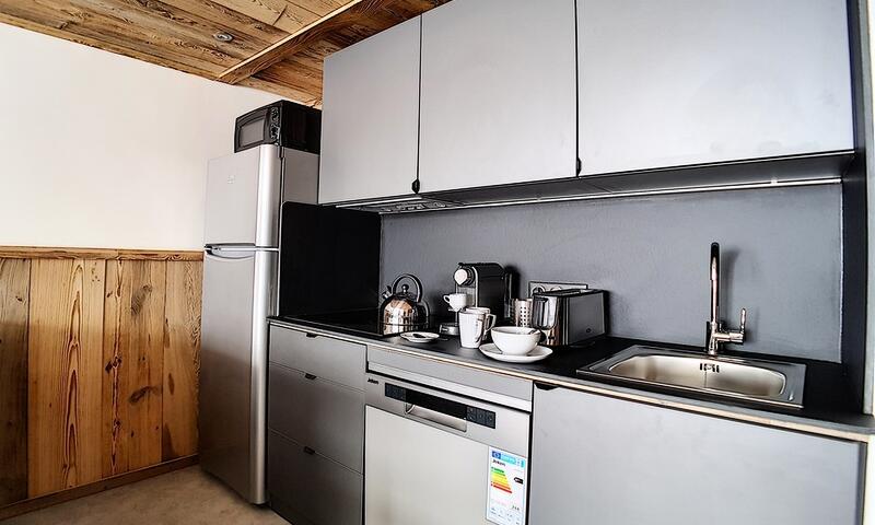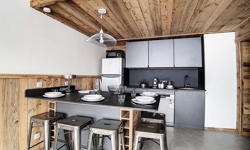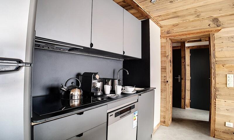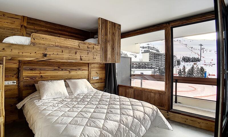 Appartement 2 pièces : 36 m²  pour 5 personnes. situé au-dessus de la galerie commerciale, au 2ème étage d'une résidence skis aux pieds, proche du départ des remontées mécaniques et du départ ESF. L'appartement possède un grand balcon orienté Sud.