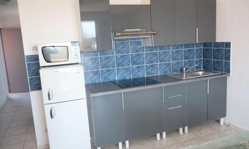 Cuisine ouverte équipée d'une plaque vitrocéramique, d'un micro-ondes, d'un réfrigérateur/congélateur, d'une cafetière électrique, et de toute la vaisselle nécessaire pour préparer vos repas.