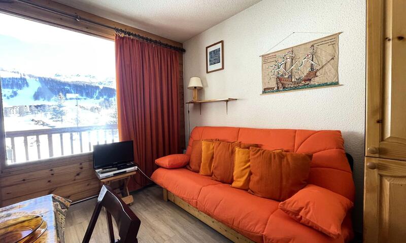 - un salon avec canapé lit et télévision, et balcon plein sud