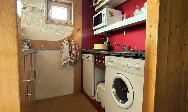 Studio équipé pour 5 personnes d'une superficie de 30 m2, situé au 4ème étage de la résidence Pierra Menta au village du Charvet d'Arc 1800, balcon exposé Nord-Est, vue Mont Blanc
