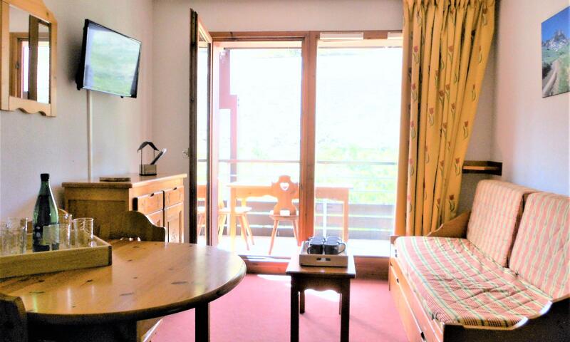 Le séjour est équipé d'1 canapé lit gigogne en 80X190  pour 1 personne, d'une télévision écran plat, d'une table pouvant accueillir 6 convives et ouvre sur un balcon équipé d'une table et de chaises, avec vue sur les pistes.