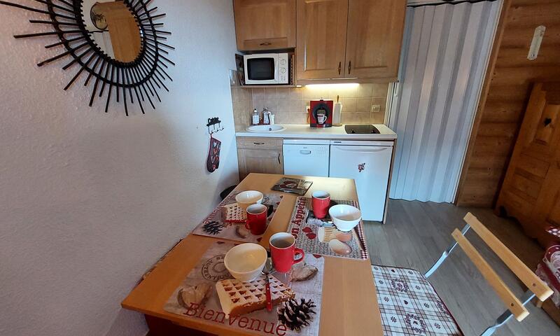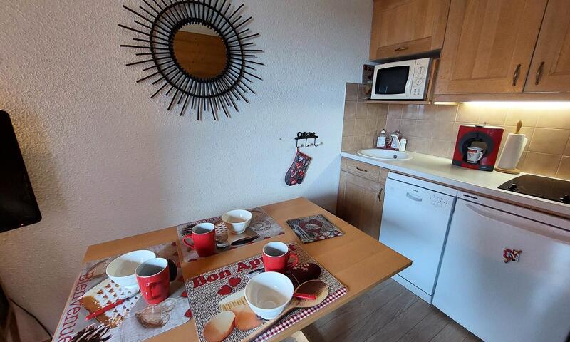 Studio de 19m², meublé pour 3 personnes au 9éme étage d'une résidence avec ascenseur. Vue dégagée sur la montagne, orienté Sud Ouest.