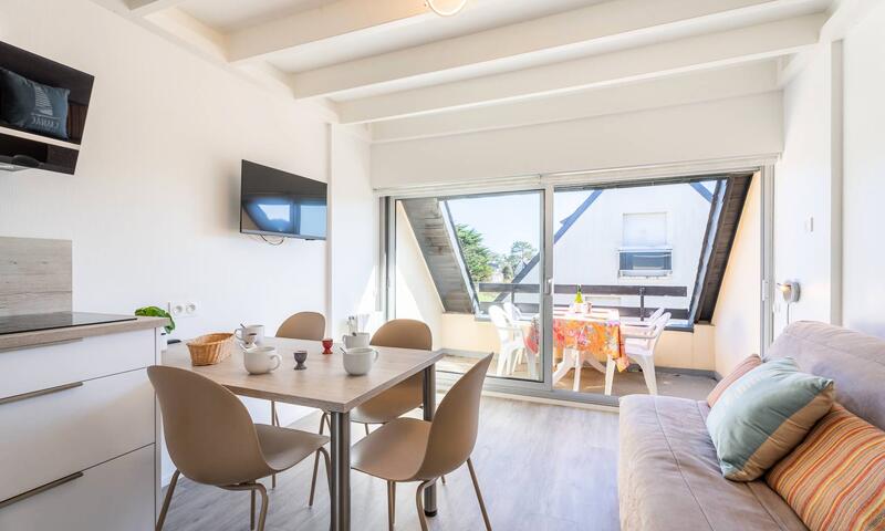 Au calme à 200m de la plage de Beaumer, à 500m de la Grande Plage et d'un supermarché, bel appartement 2 pièces duplex (env.28 m²) pour 4 personnes, situé dans la résidence PLEIN SOLEIL (2e étage, porte 24) :