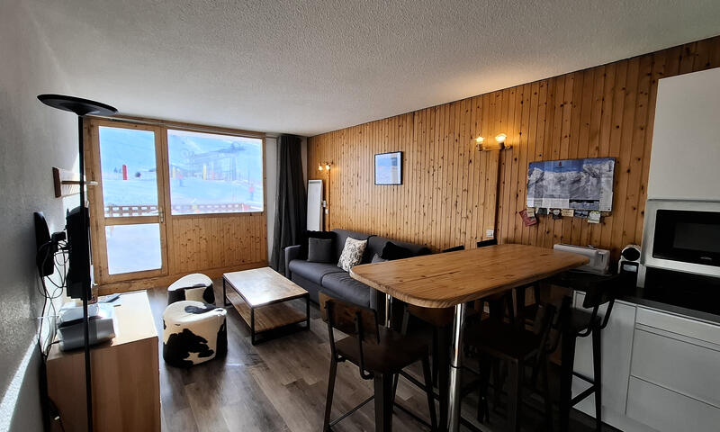 Situé dans la résidence Plein Soleil au pied des pistes de Plagne Villages. Appartement 2 pièces en triplex de 40m² pour 6 personnes, avec grande terrasse rez-de-pistes (1er étage).
