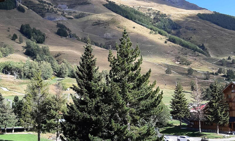 Balcon exposé sud, avec vue sur les montagnes et sur les pistes.