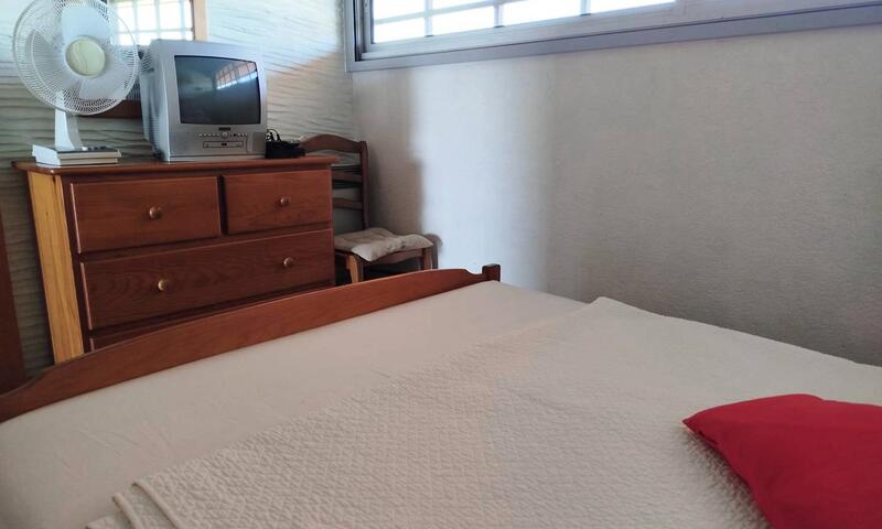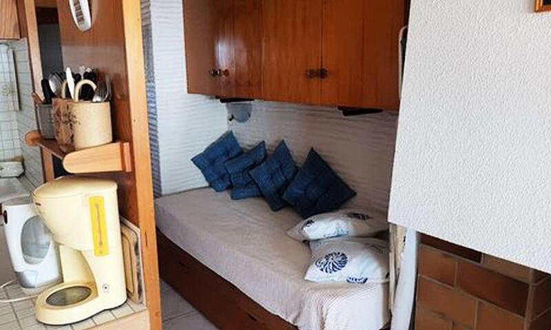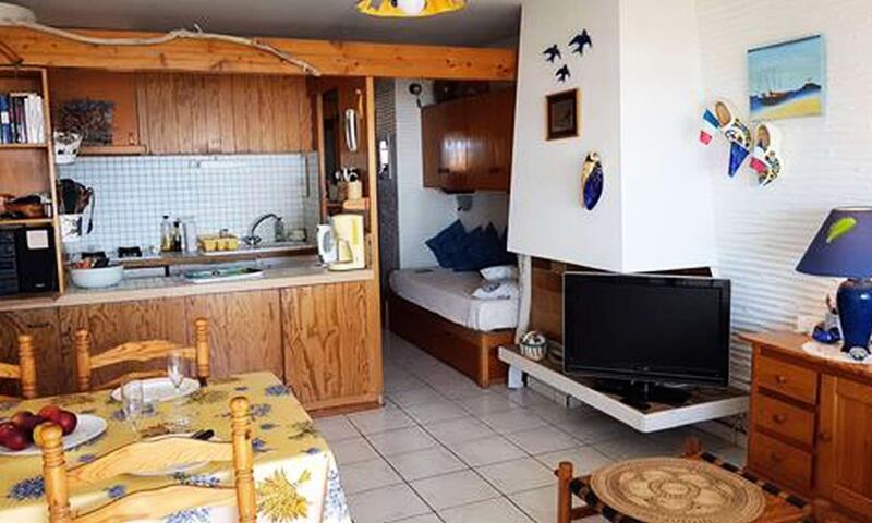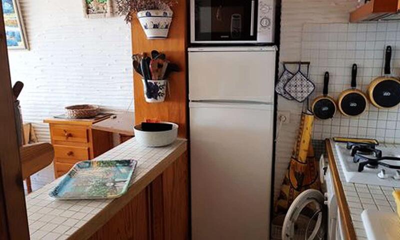 Composé d'une entrée avec lit en 90, séjour avec canapé clic clac en 140, TV, un coin cuisine équipée (réfrigérateur/congélateur, micro-ondes, plaque de cuisson à gaz, lave linge, lave vaisselle ...), une salle d'eau (douche) avec W.C, une chambre (Vue sur le Canigou) avec lit en 140 et placard de rangements.