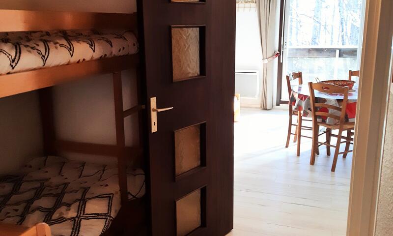 Le coin nuit est situé dans le couloir séparé du salon par une porte.