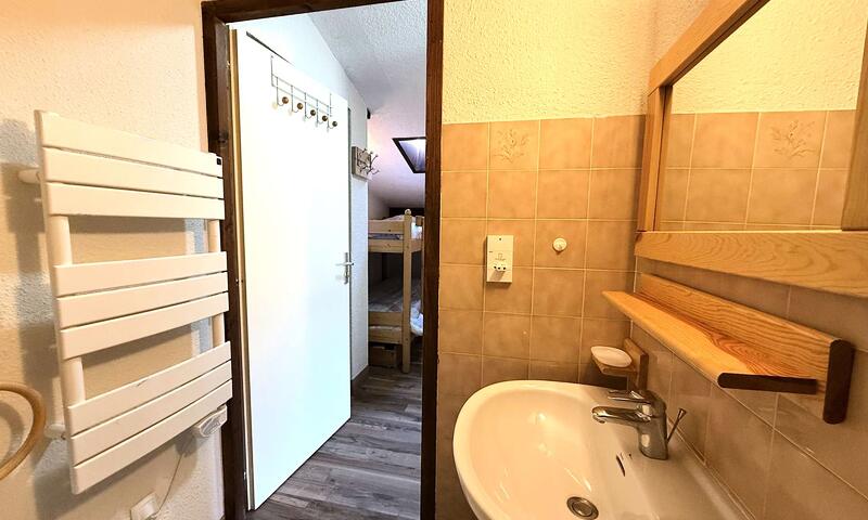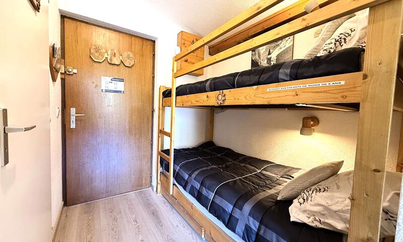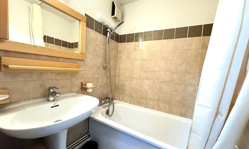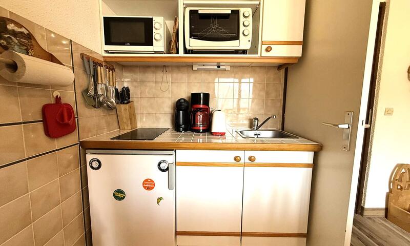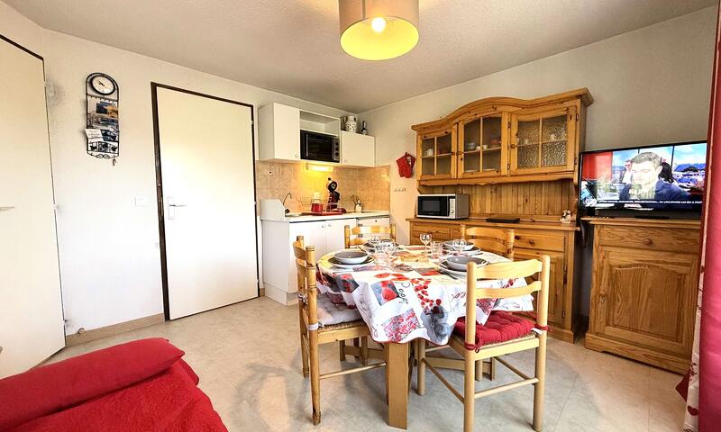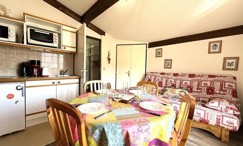Situé au premier étage sans ascenseur d'une résidence au bord des pistes de ski, cette location vacances à la montagne de 28m² est composé d'une séjour/salle à manger, d'une cuisine ouverte toute équipée, d'une chambre avec un lit double, d'un coin montagne avec deux lits simples superposés, ainsi que d'une salle de bains avec baignoire et un WC indépendant.