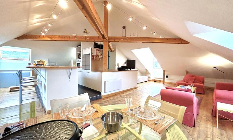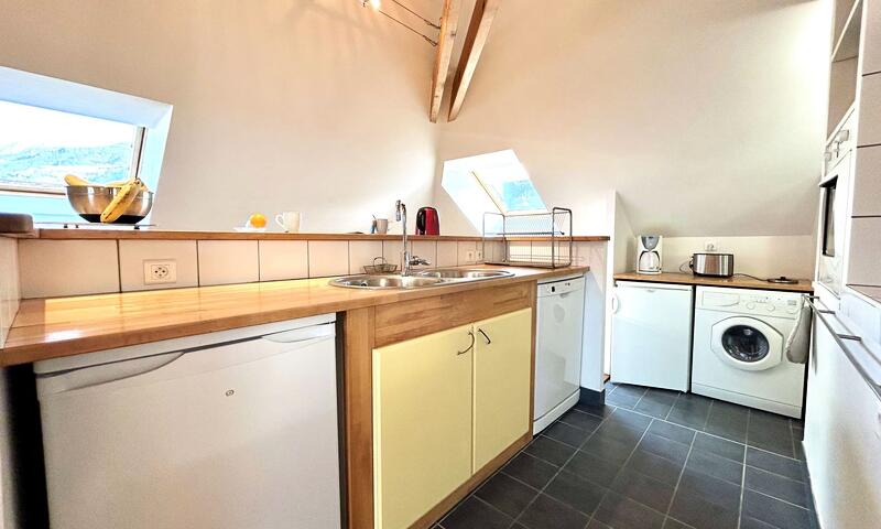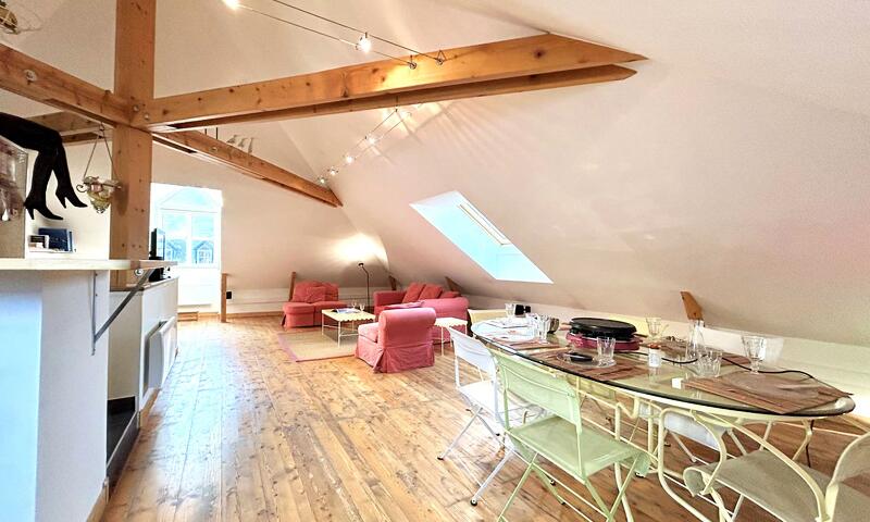 Bel appartement de vacances 70m² (loi carrez) en duplex, pouvant accueillir jusqu'à 8 personnes, situé au 3ème et dernier étage d'une résidence récente, bien entretenue, au cœur de Briançon à proximité de nombreux commerces et à seulement 400m de la télécabine.