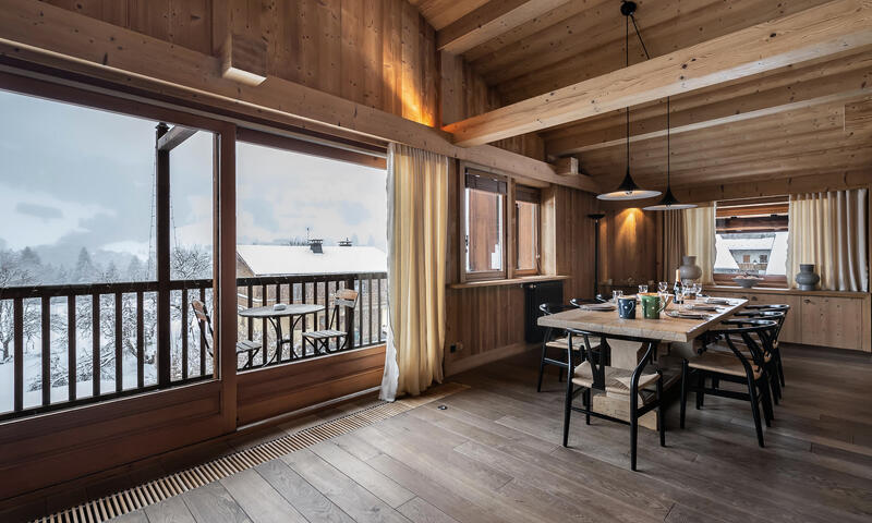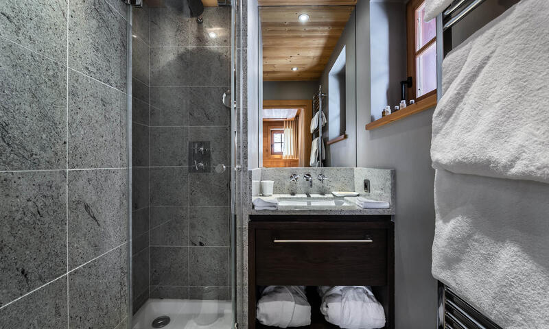 Le chalet Reine des Prés, situé à proximité de la télécabine de Rochebrune est un chalet idéal pour des vacances en famille à Megève. Une pièce de vie lumineuse, propose différents espaces, un salon télévision cosy, un salon cocooning et un bel espace repas, proche de la cuisine. Des couleurs douces telles qu'un gris bleu aux différentes nuances, se marient à merveille au bois clair qui compose le chalet. Les quatre chambres doubles et la mezzanine permettent de réunir 8 adultes et 2 enfants.  Vous apprécierez également l'espace détente avec le bains à remous intérieur et le sauna.