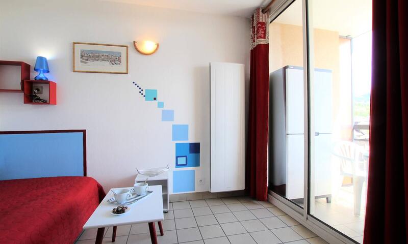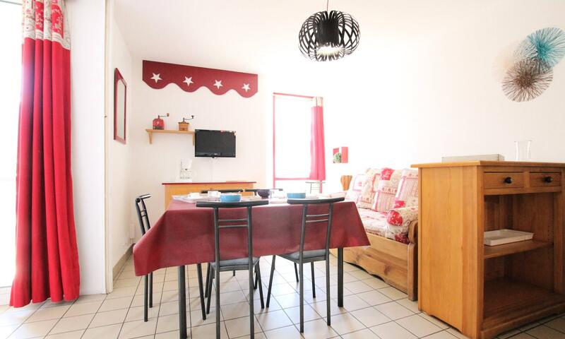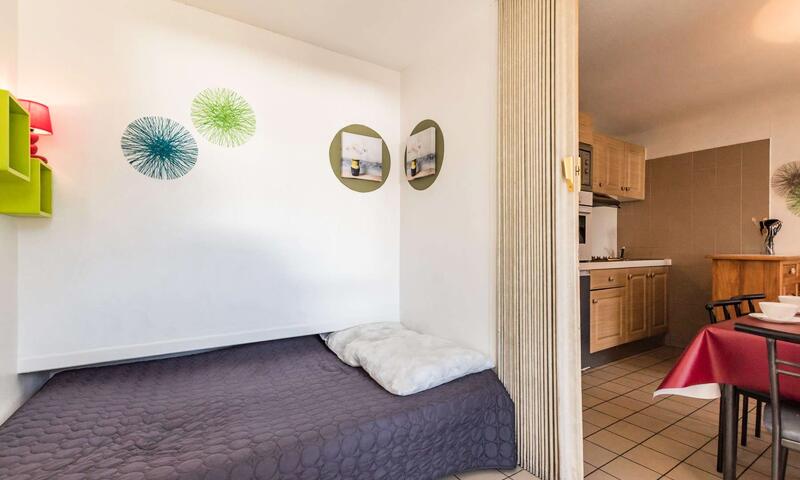 Il comprend une chambre avec lit double en 140, cette chambre est fermée par un rideau en PVC mobile donnant accès au balcon, un coin montagne avec lits superposés, un séjour avec lit gigogne 2 places et TV, une kitchenette bien équipée avec lave-vaisselle, cafetière, grille-pain..., une salle d'eau, WC séparés