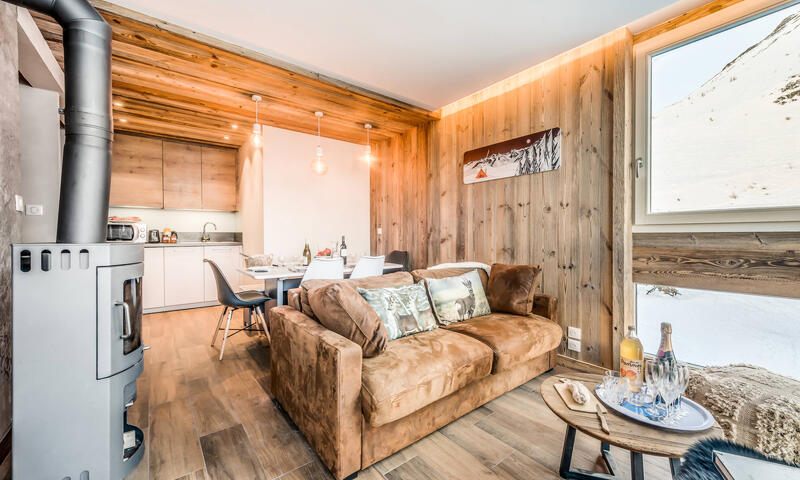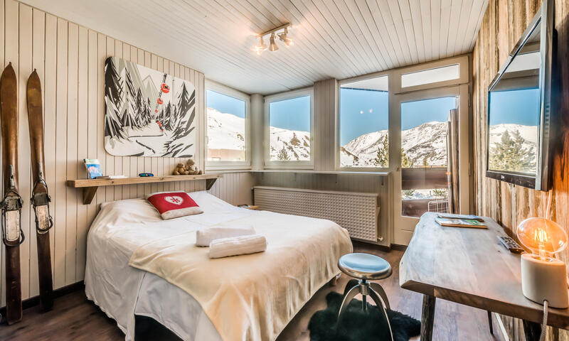 Avec de grandes fenêtres, un balcon orienté sud, une belle vue sur le glacier de la Grande Motte, les montagnes.