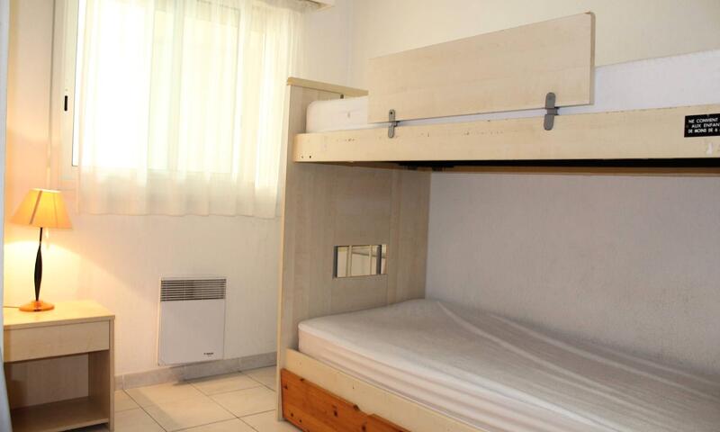 Cet appartement se situe au 3eme étage, se compose à l'arrière d'une chambre avec deux lits superposés. Une Salle de bain avec toilette. D'une cuisine américaine donnant sur un séjour avec canapé convertible son coin repas et une belle terrasse. Ménage fin de séjour inclus.