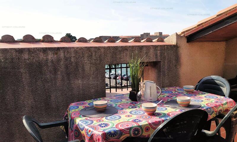 Dans une rue du village, située à environ 30m de la plage et des commerces, avec très belle vue panoramique sur le port, bel appartement au 3ème étage (80m2 environ) d'une maison typique avec une terrasse de 12m2 environ, vue sur mer, collines et château. Il se compose d'un séjour avec un clic-clac et TV, cuisine (gazinière, micro-ondes, lave vaisselle, lave linge)/salle à manger avec lave linge, lave vaisselle, micro-ondes. De deux chambres spacieuses avec lavabo, une avec un lit pour 2 personnes, la seconde avec 2 lits 1 personne, salle d'eau et WC indépendant. Parking privé. Pour enfants, facilité d'accès à la plage, puisque aucun route à traverser.