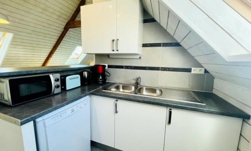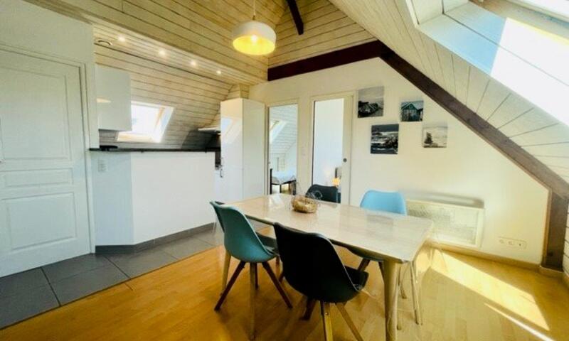 Ce charmant 3 pièces d'environ 66m² pour 4 personnes, bien équipé et bien entretenu se situe au 1er étage d'une maison. Idéalement situé avec son premier commerce à 50m et les plages à moins d'un kilomètre.