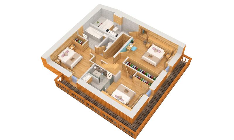Le chalet "RUISSEAU RENARDE" (mitoyen) d'une superficie d'environ 200m², est équipé pour 6 adultes et 5 enfants avec 4 chambres ensuite, possibiity de 2chambres supplémentaires avec l'appartement du RDC. Exposé Sud-Ouest.