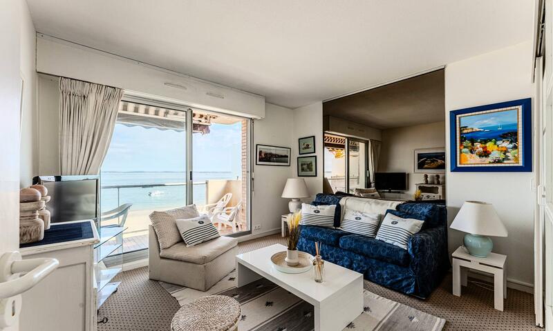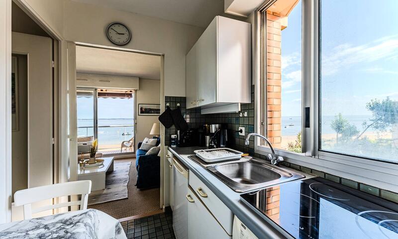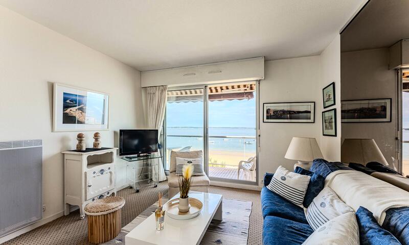 Le balcon, équipé de mobilier et d'un store banne, offre une vue magnifique sur la plage et le bassin. L'appartement est entièrement moquetté. Ensemble et équipements d'époque, mais fonctionnels. Une place de parking nominative sécurisée, non couverte, est à votre disposition. Les animaux ne sont pas admis. Le linge blanc n'est pas fourni, mais vous avez la possibilité de le louer