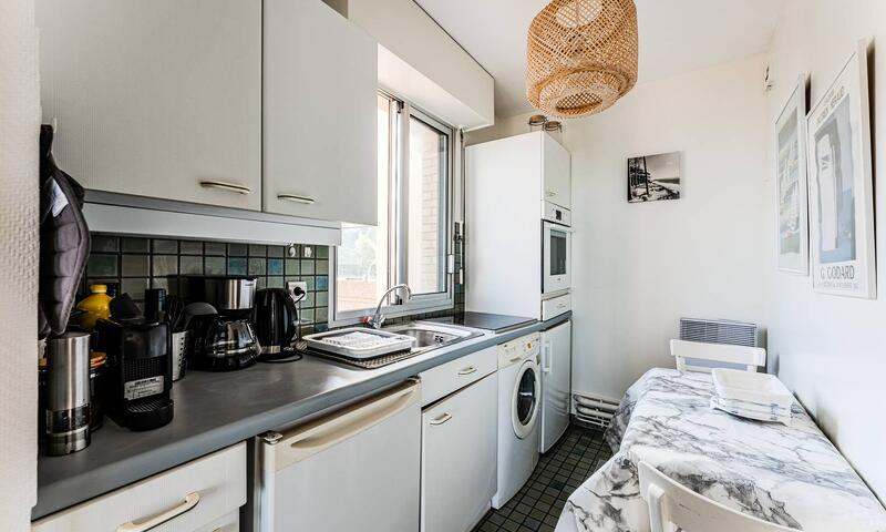 À votre arrivée, un couloir d'entrée équipé d'un placard/penderie vous accueille, menant à une salle d'eau avec cabine de douche (avec une marche pour y accéder). Vous trouverez également une chambre avec un lit en 150 cm, une télévision, une commode et un accès au balcon. Les toilettes sont séparées. La cuisine, équipée (four, petit réfrigérateur, plaques, lave-linge), est séparée et dispose d'un coin repas et d'une fenêtre. Le séjour est pourvu d'un canapé-lit, idéal pour un couchage d'appoint, d'une télévision et donne également accès au balcon.