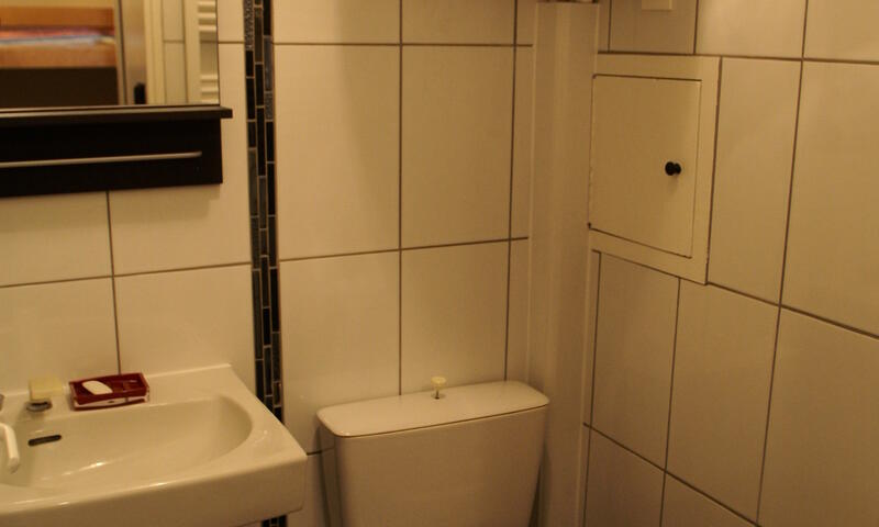 Salle de bain avec cabine de douche, lavabo et WC. Ce bien est équipé d'une cafetère à filtre mais ne dispose pas d' appareil à raclette.