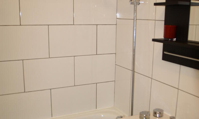 Salle de bain avec baignoire et lavabo. WC séparés. Ce bien est équipé d'une cafetère à filtre et d'un appareil à raclette.