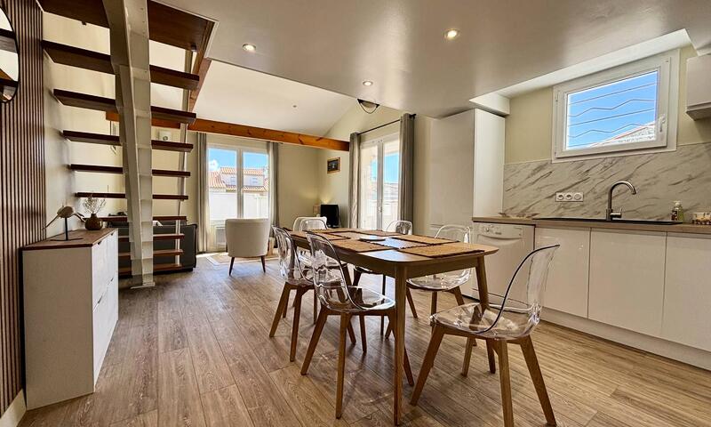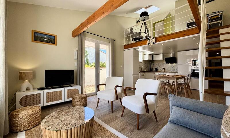Charmante maison de vacances à deux pas du centre-ville et au bord de la plage de La Boirie. Elle se compose d'une pièce de vie avec salon/salle à manger, d'une cuisine aménagée et équipée avec lave-vaisselle, d'une première chambre avec un lit deux couchages (160) et dressing, d'une deuxième chambre avec un lit deux couchages (160) et dressing, d'une salle d'eau avec douche et vasque ainsi qu'un WC. A l'étage, une mezzanine avec un coin détente et rangements, une troisième chambre avec lit deux couchages (160) et une salle d'eau avec cabinet de douche, vasque et WC. En extérieur, une belle terrasse aménagée avec un barbecue et salon de jardin, un garage avec quatre vélos, un évier, un lave-linge et un congélateur. Parking pour plusieurs voitures sur le terrain avec portail sécurisé.
