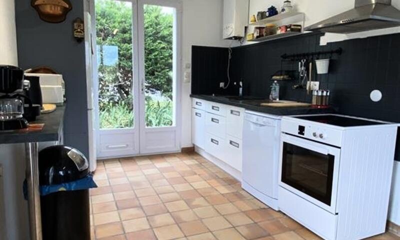 Agréable maison au calme se composant d'une pièce de vie avec coin salon/salle à manger et avec coin cuisine équipé et aménagé, d'une première chambre deux couchages (140), d'une seconde chambre deux couchages (140), d'une salle d'eau avec lave-linge et WC indépendant. En extérieur, jardin clos, avec terrasse et mobilier de jardin. Stationnement devant la propriété.