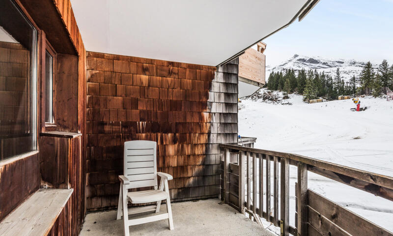 - Balcon orienté sud avec vue sur la montagne et téléphérique des Prodains.