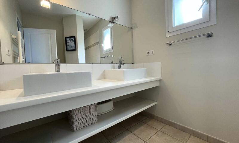 Superbe villa de vacances se composant d'une grande pièce à vivre (55m²) avec canapé d'angle, TV écran plat, WIFI, table à manger avec bancs, coin cuisine équipé et aménagé, d'une première chambre deux couchages (160), d'une seconde chambre deux couchages (160), d'une troisième chambre deux couchages (160), d'un WC indépendant, d'une quatrième chambre deux couchages (90), d'un second WC indépendant, d'une cinquième chambre deux couchages (90 + gigognes), d'une salle d'eau, lave-linge et sèche-linge et d'une salle d'eau avec douche à l'italienne . A l'extérieur, grande terrasse avec table à manger et store banne, places de parking, grand jardin clos et privé.