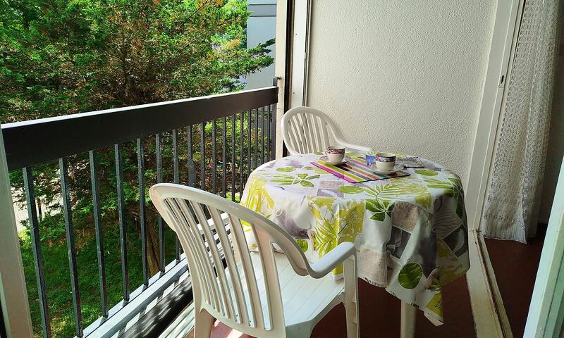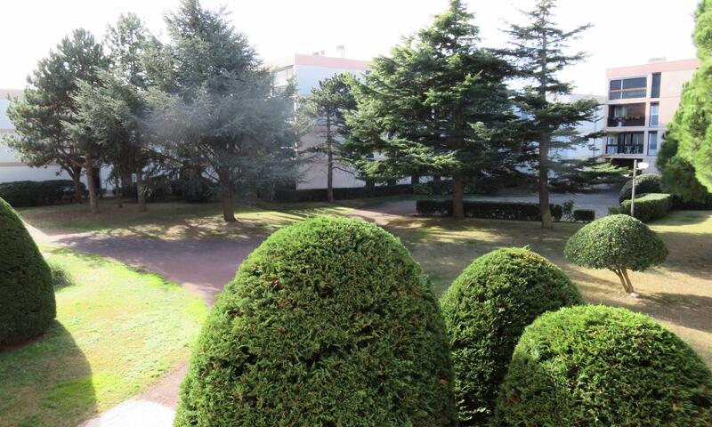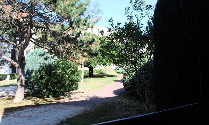 Terrasse avec vue sur le parc arboré de la résidence auquel vous aurez accès.