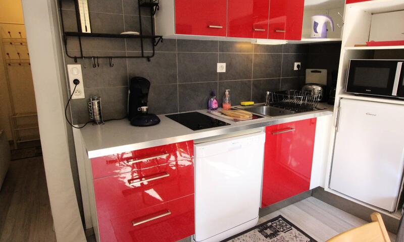 Ce studio comprend un séjour avec un canapé, téléviseur, une kitchenette équipée (lave-vaisselle, cafetière électrique, grille-pain, four, micro-ondes), un coin cabine avec 1 lit en 140 et lit mezzanine en 90 et commode. salle d'eau avec wc, lave-linge et penderie.