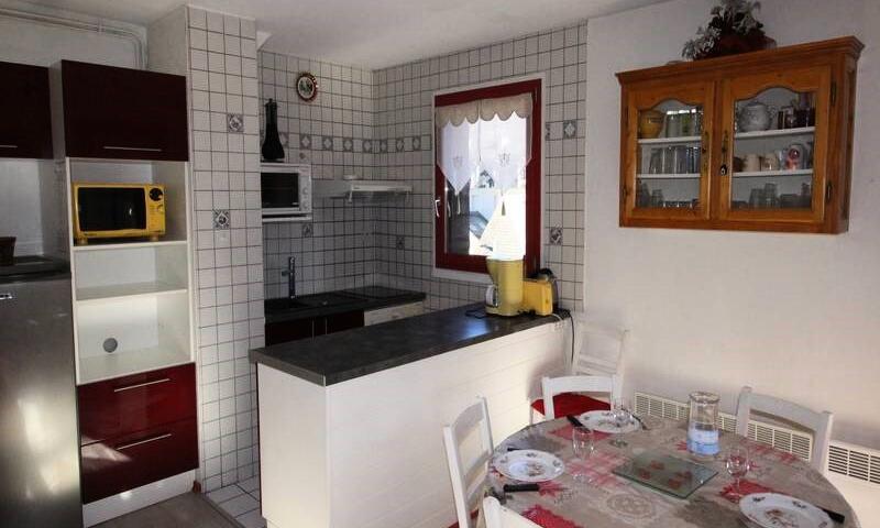Cet appartement comprend une entrée avec salle d'eau, douche, lave-linge et wc indépendants, une chambre avec un lit 140, une autre chambre avec un lit 140, un séjour avec un clic clac deux personnes 140, mobilier pin, deux portes-fenêtres dans le séjour exposé au sud donnant sur une loggia avec une très belle vue. kitchenette équipée (micro-ondes, mini-four, réfrigérateur congélateur, plaques vitrocéramique, hotte aspirante).