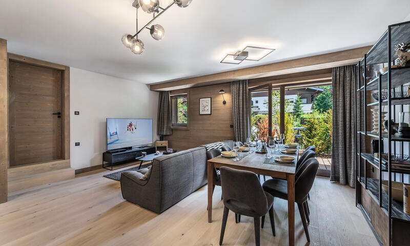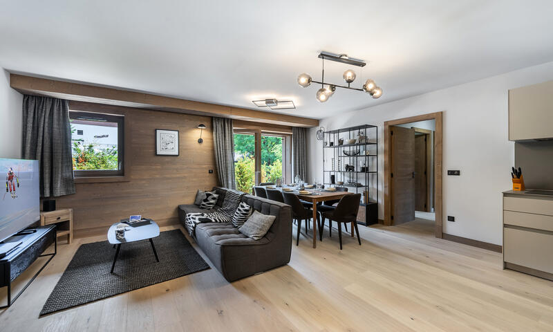 Appartement de 83 m² situé dans le quartier calme de Rochebrune, à 15-20 minutes à pied du centre de Megève et à moins de 10 minutes des remontées mécaniques. Il accueille confortablement 6 adultes en chambres doubles et 2 enfants en lits superposés. La pièce de vie lumineuse s'ouvre sur un large balcon avec vue sur la vallée de Praz-sur-Arly, idéal pour profiter du soleil en fin de journée. L'espace salle à manger, avec sa grande table en bois, favorise la convivialité, tandis que le grand canapé invite à la détente.