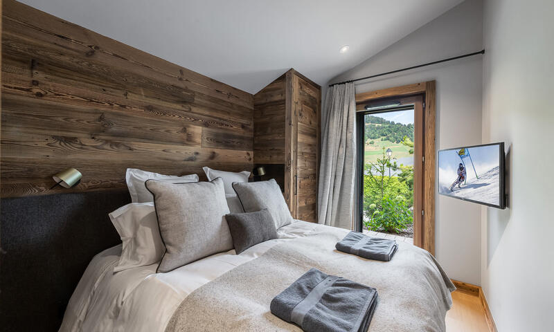 L'appartement Stallion F02 de 140 m² est réparti sur 3 étages avec ascenseur, il se trouve à 600 m des remontées de Rochebrune et à moins de 5 minutes en voiture du centre de Megève. Il peut accueillir jusqu'à 4 adultes et 4 enfants, avec 2 chambres doubles, une chambre enfants avec lits superposés, et une salle de cinéma offrant un couchage supplémentaire sur demande. Au dernier étage, la pièce de vie lumineuse comprend une cuisine équipée, un espace repas et un salon avec cheminée.