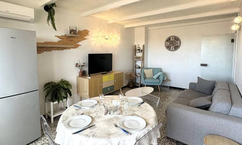Accès à 200 m de la plage, appartement  T2 équipé pour 4 personnes situé au 5 ème étage.