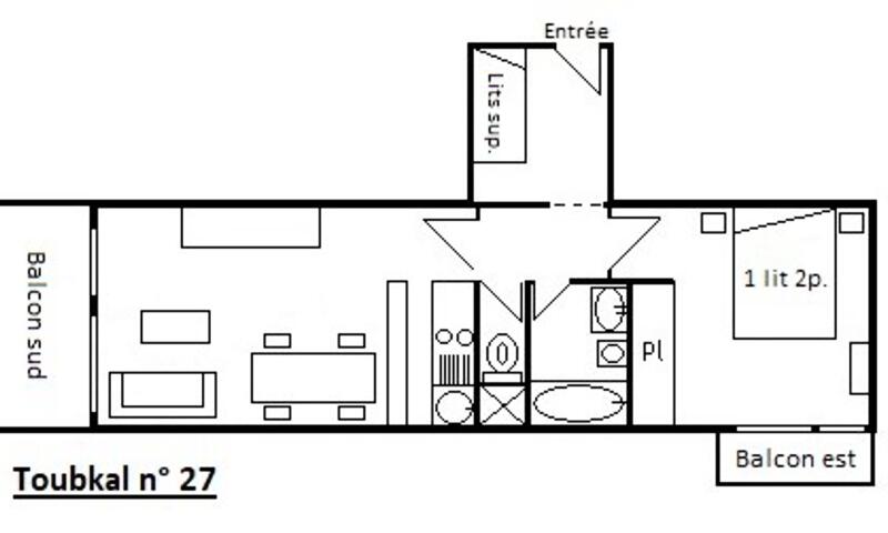 La résidence Le Toubkal est située à 100m des pistes, 50m de l'arrêt de bus, 350m des commerces et restaurants et à 2 kms du centre de la station.