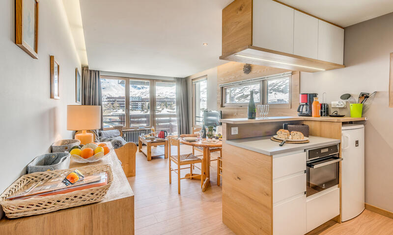 - Kitchenette ouverte sur le séjour - et le coin repas, équipée : plaques vitrocéramique, réfrigérateur, four, lave vaisselle,