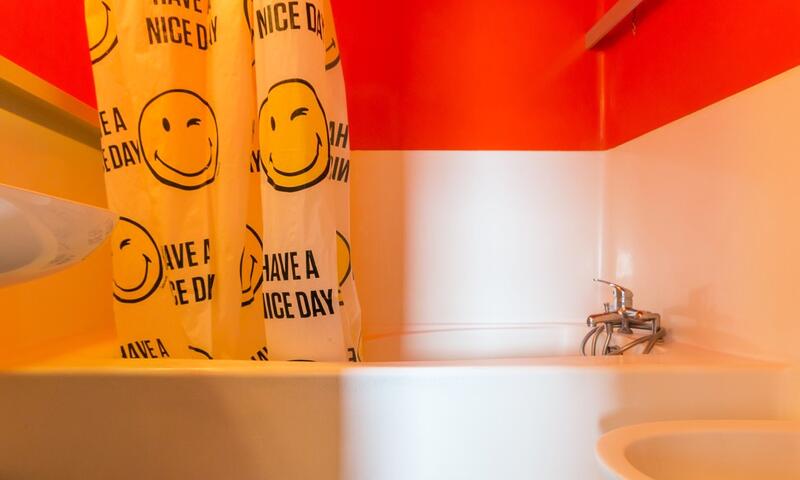 Une chambre séparée avec 2 lits superposés, un 3ème lit simple ainsi qu'1 canapé convertible dans le séjour, une télévision.
