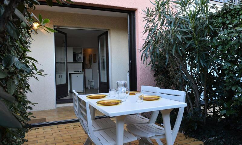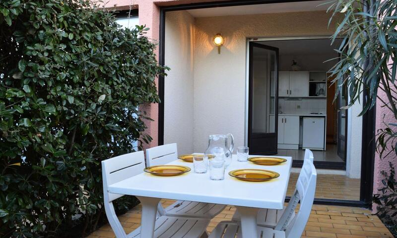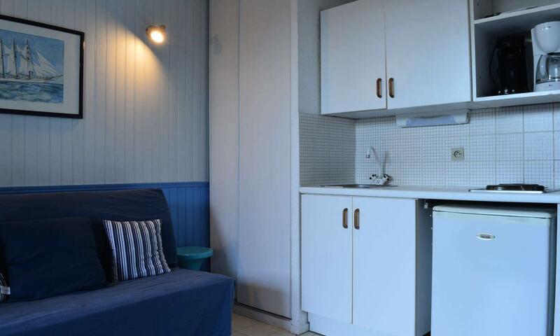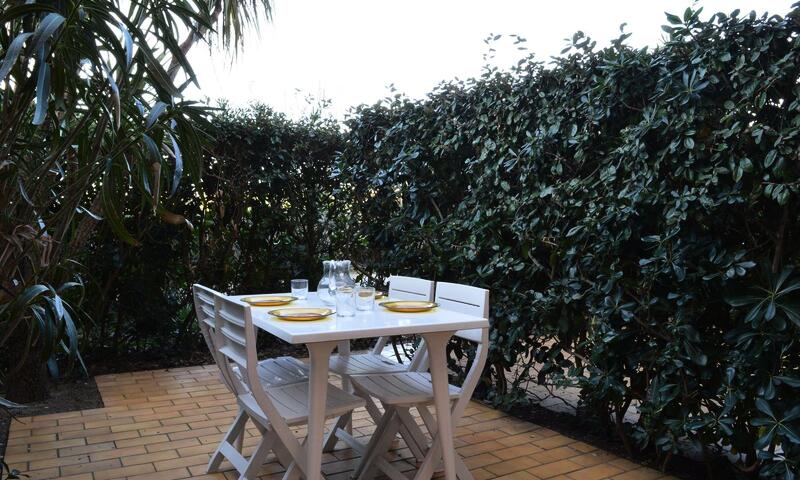Cet appartement à la mer, au rez de chaussée propose un séjour avec canapé convertible 2 personnes, un téléviseur et un coin cuisine équipé, une chambre cabine avec des lits superposés et une fenêtre. Le séjour s'ouvre sur une loggia et une terrasse avec salon de jardin.