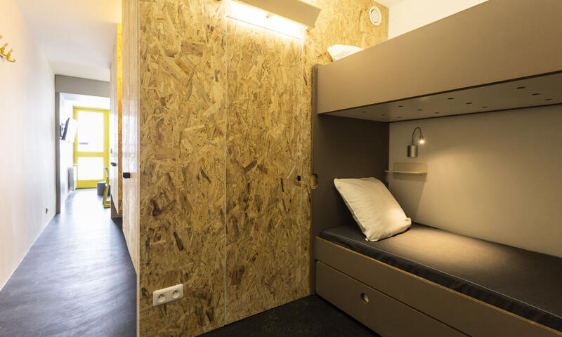 Entrée avec 2 lits superposés et 1 lit gigogne en 80m ( le couchage en hauteur ne convient pas aux enfants de - 6ans)