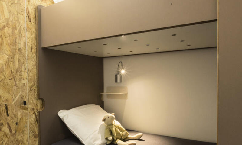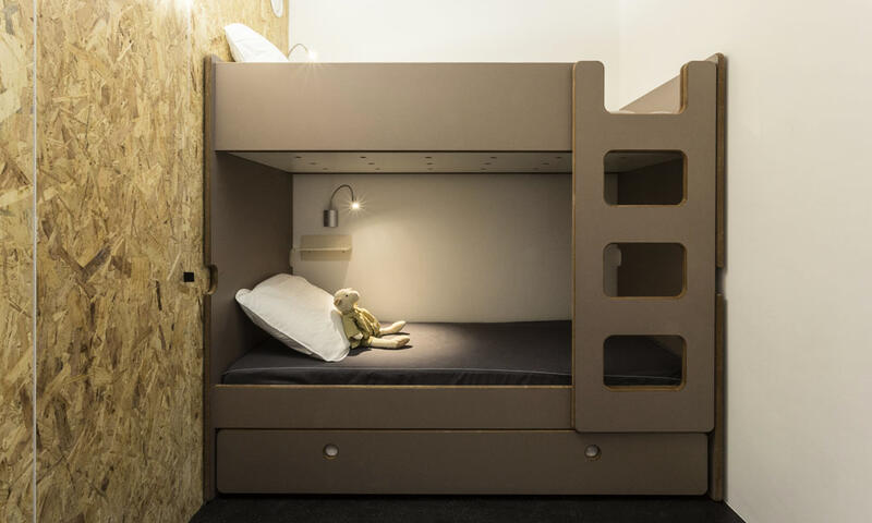 Entrée avec 2 lits superposés et 1 lit gigogne en 80cm (le couchage en hauteur ne convient pas aux enfants de moins de 6 ans)