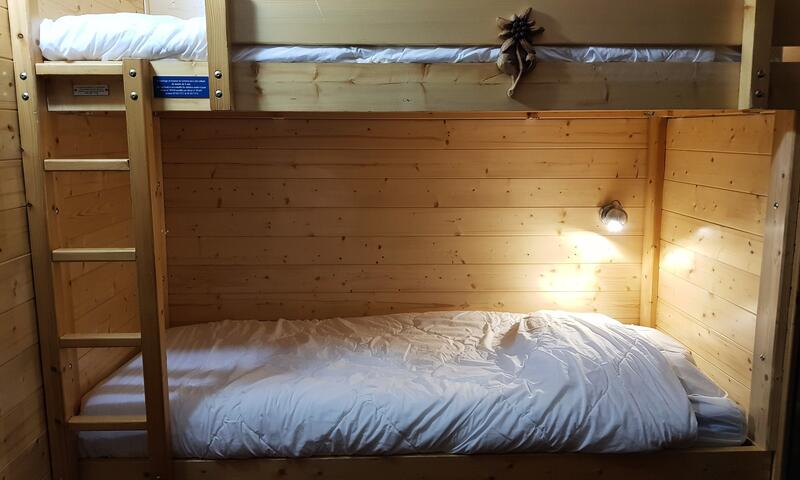 Un espace couchage est aménagé avec 1 lit superposé. Le couchage en hauteur ne convient pas aux enfants de moins de 6 ans