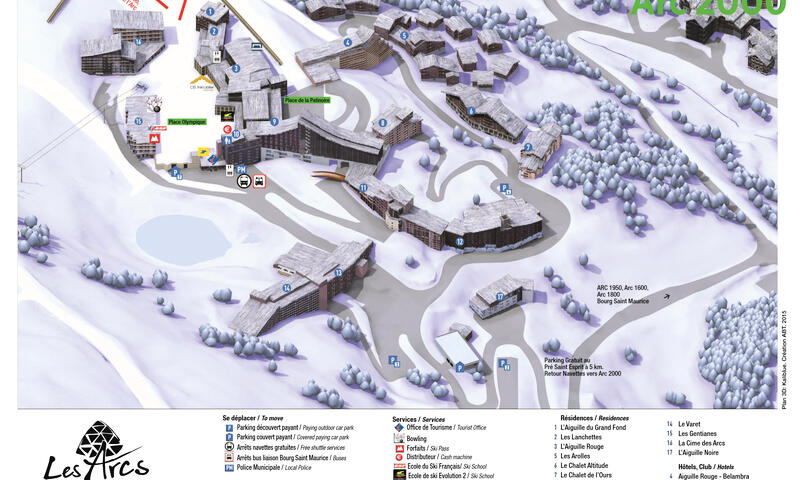 Cette résidence est située à l'entrée de la station d'Arc 2000 et à environ 5 minutes à pied du centre station, des commerces, des restaurants et des pistes.