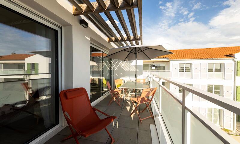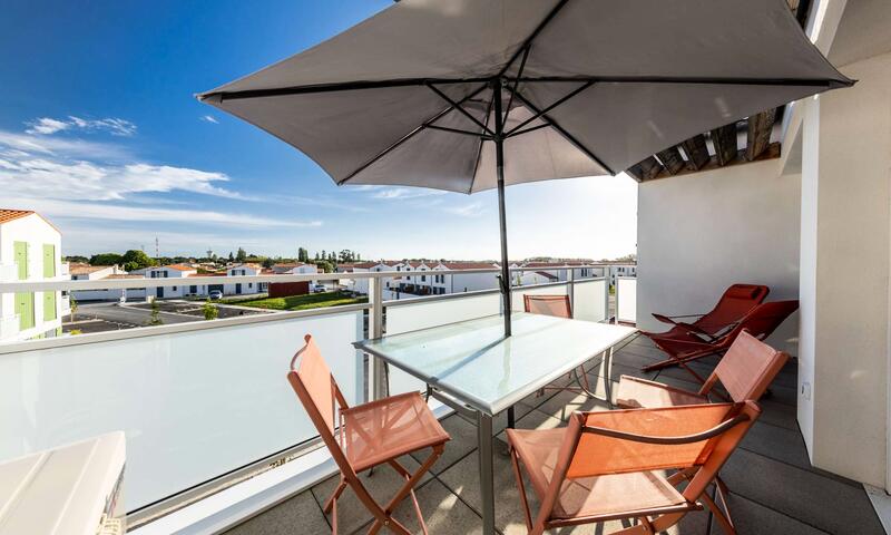 En extérieur, balcon privatif avec mobilier de jardin, parasol, barbecue électrique, chaises longues. Local vélo sécurisé et place de stationnement privative.